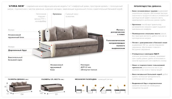 Диван Атика (Империал) продается в интернет-магазине mebelin-stupino.ru по цене 69 362 руб. Есть доставка по Ступино и Московской области. Возможность подъема на этаж и сборки уточняйте у менеджера по телефону 8(800)505-27-11.