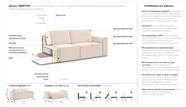 Диван Милтон (Империал) продается в интернет-магазине mebelin-stupino.ru по цене 60 770 руб. Есть доставка по Ступино и Московской области. Возможность подъема на этаж и сборки уточняйте у менеджера по телефону 8(800)505-27-11.